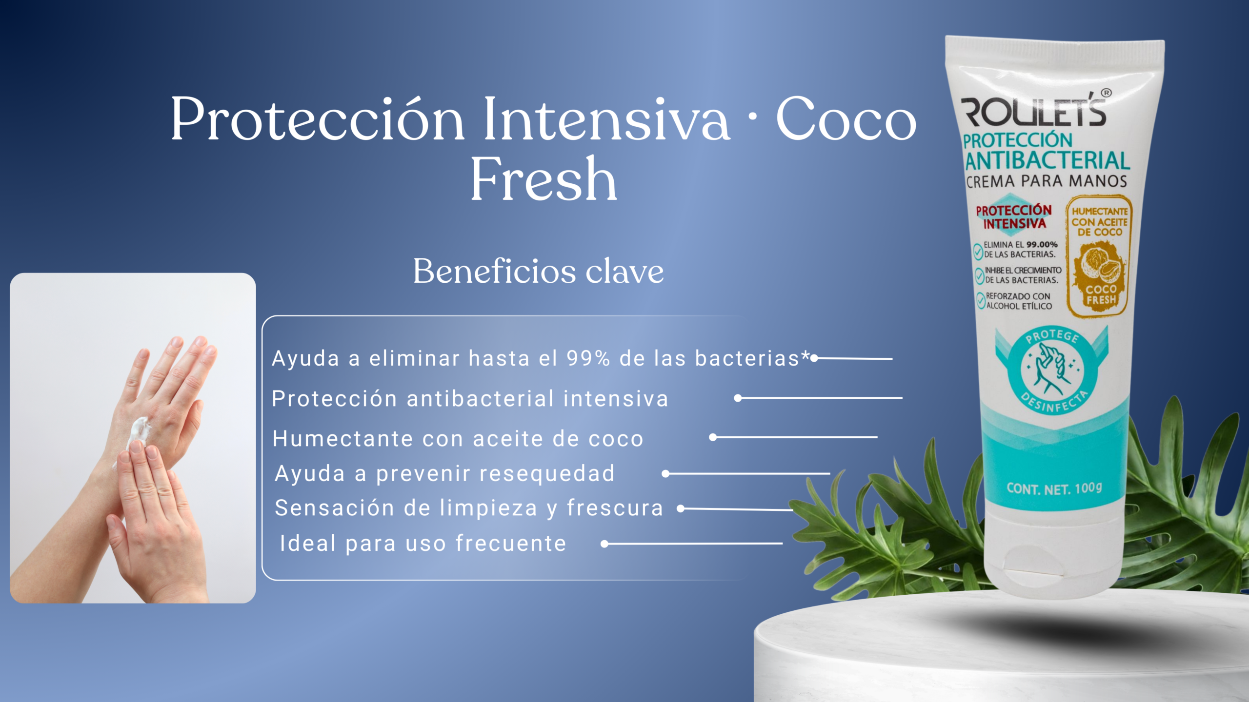 Pensada para quienes necesitan una protección más intensiva, Roulet’s Crema Antibacterial para Manos ayuda a eliminar bacterias mientras hidrata profundamente la piel.
